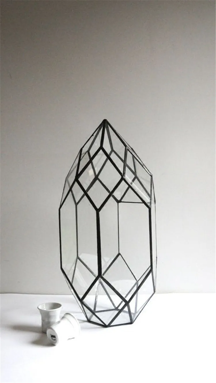 Handmade Glass Terrarium / Modern Planter for Indoor Gardening / Geometric Crystal Shape Orchid Planter Table Greenhouse