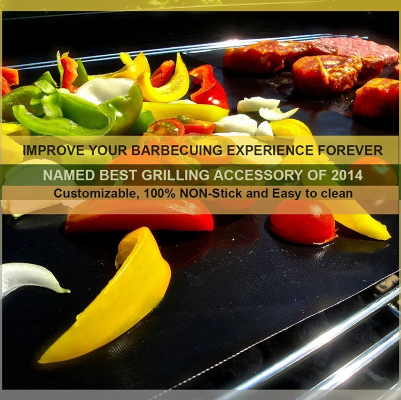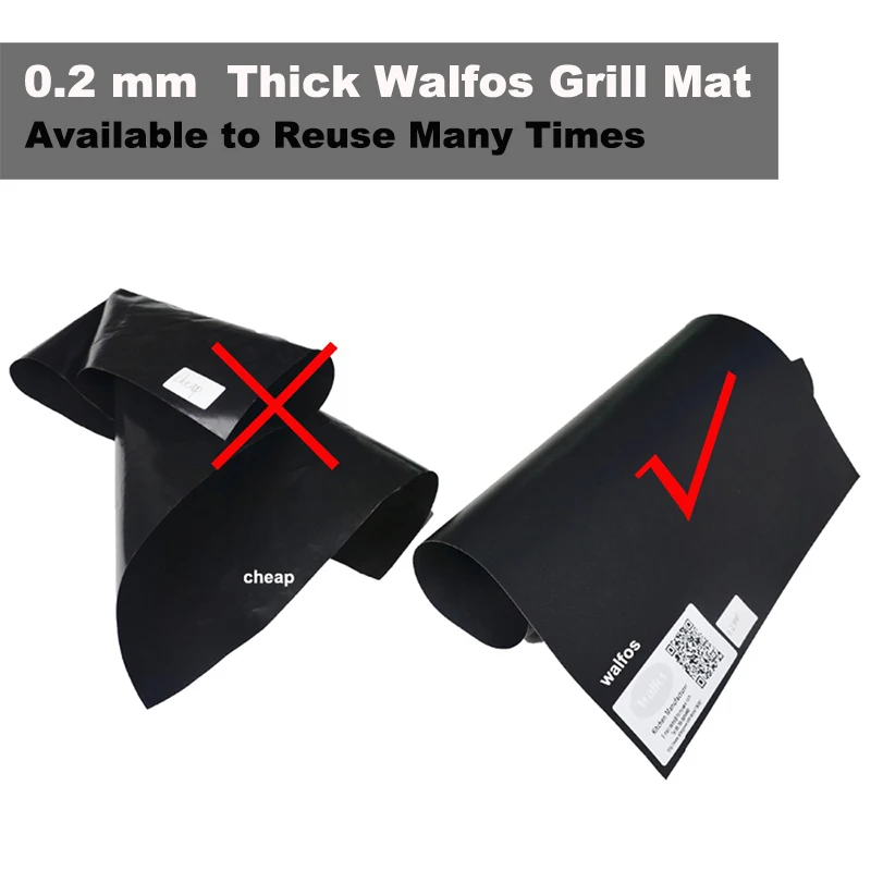 WALFOS 0.2mm Thick Ptfe Barbecue Grill Mat 33*40cm Non-Stick Reusable Baking BBQ Grill Mats Sheet Grill Foil BBQ Liner